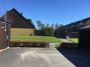 Flaggstång vid infarten.Gångväg mellan hus och carportar.En av tre lekplatser.Gavelhus.Nära hem från carport och parkering.Från Knipeflågsbergens naturreservat.Våfflor en halvtimmes gångväg bort.Tryggt med upplysta hus kvällstid.Soldatängens förskola tio minuter iväg.Oxledsskolan nås på en kvart.Vattenfall på väg hem från bussen.Sörlyckan i vinterskrud.